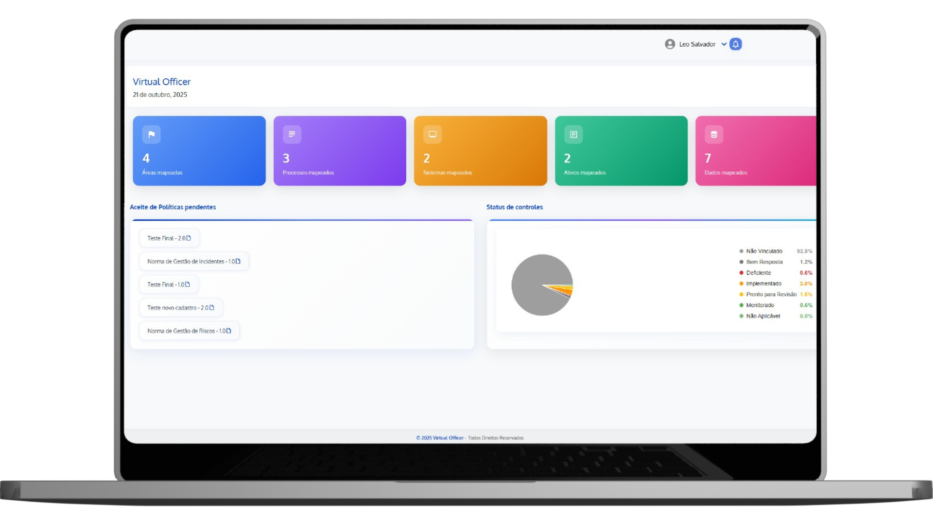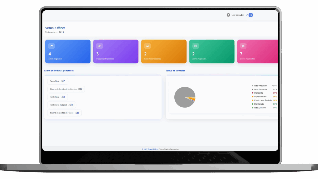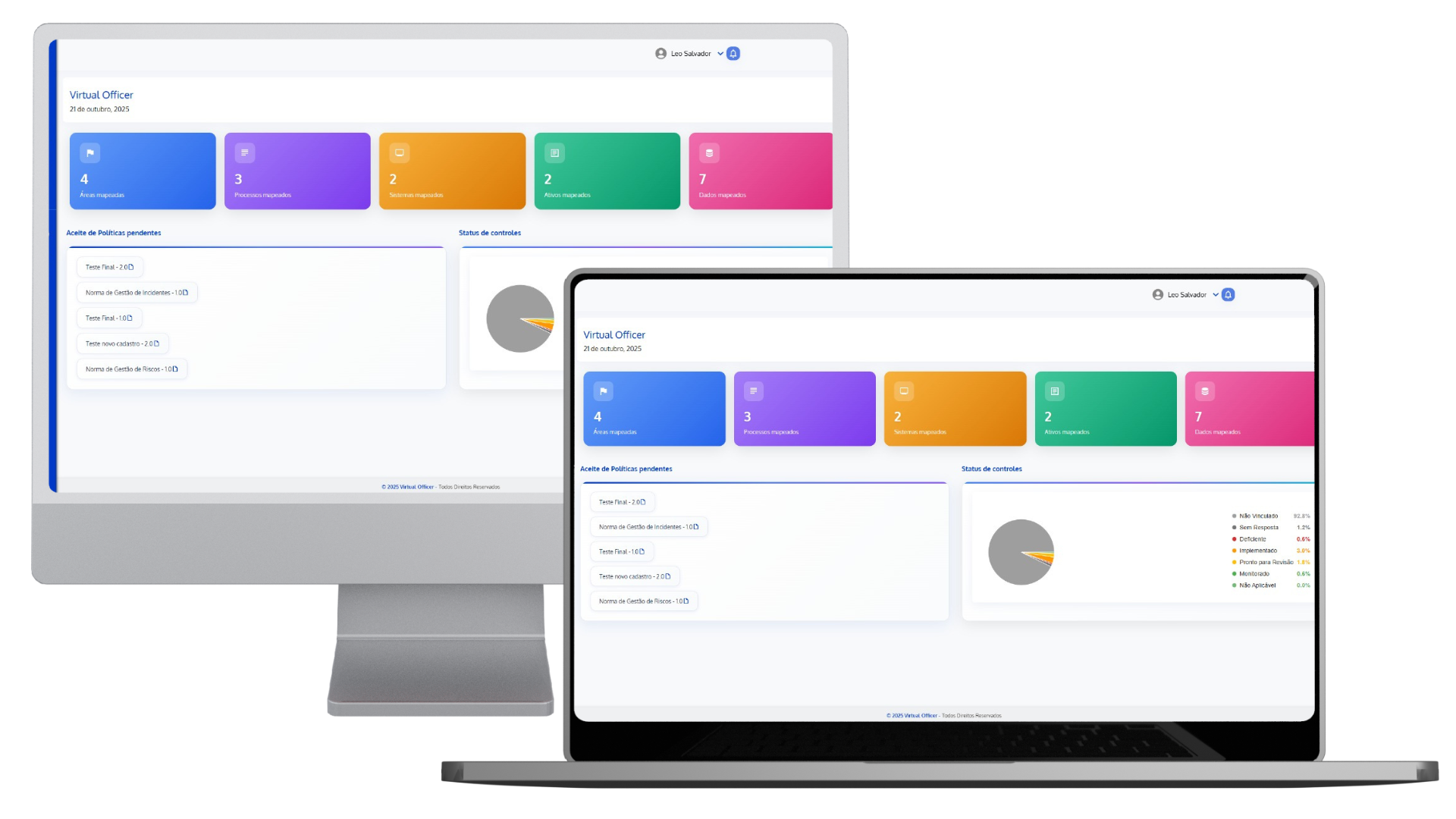 A Virtual Officer centraliza toda a gestão de privacidade e proteção de dados da sua empresa em uma única plataforma.