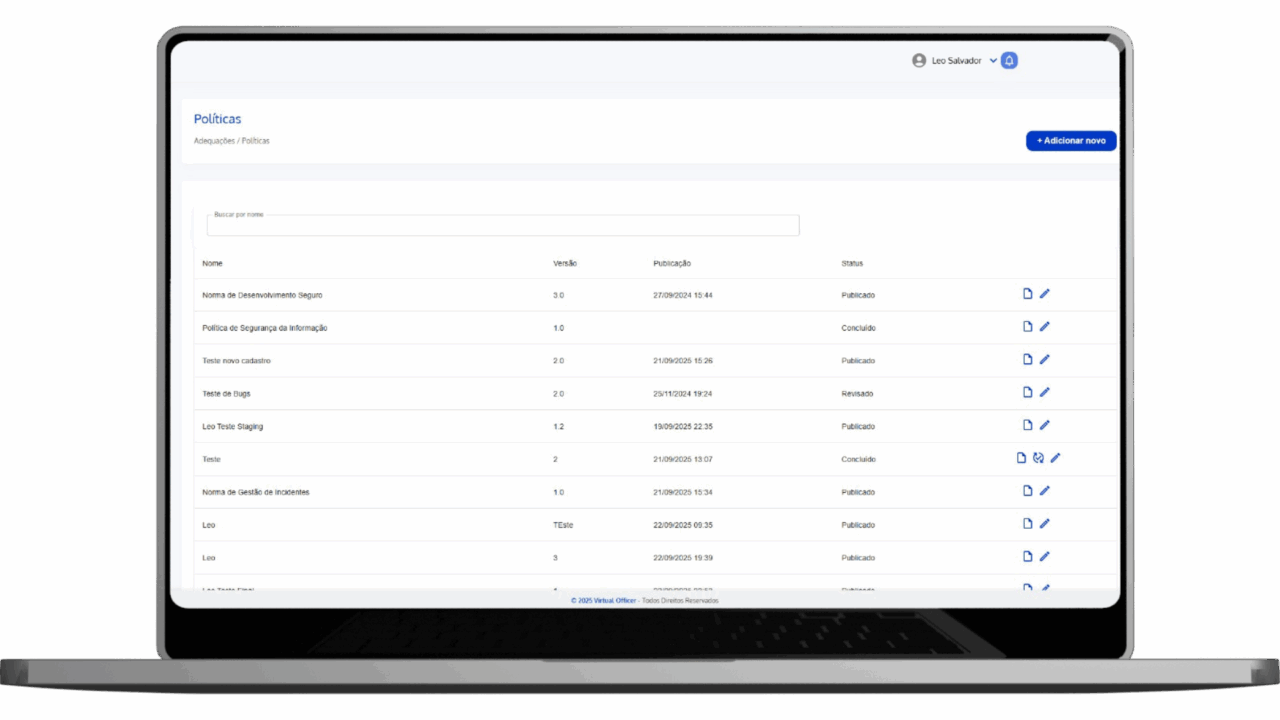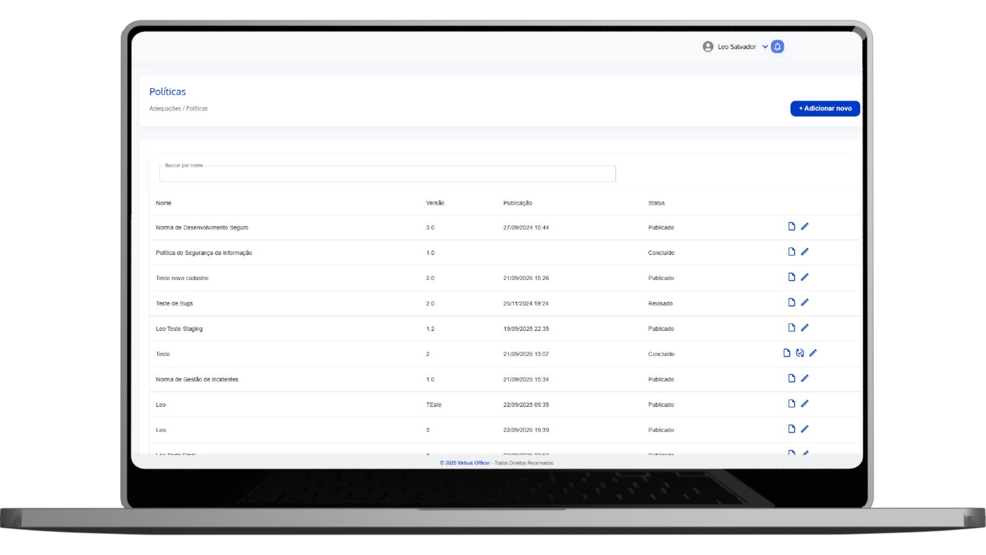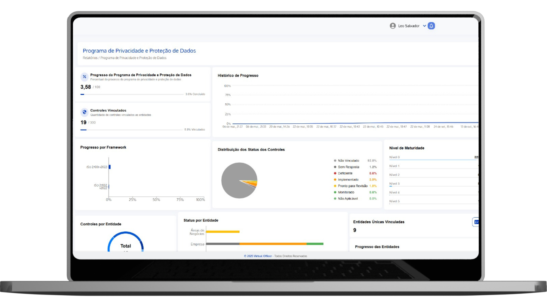A Virtual Officer centraliza toda a gestão de privacidade e proteção de dados da sua empresa em uma única plataforma.