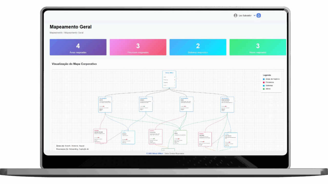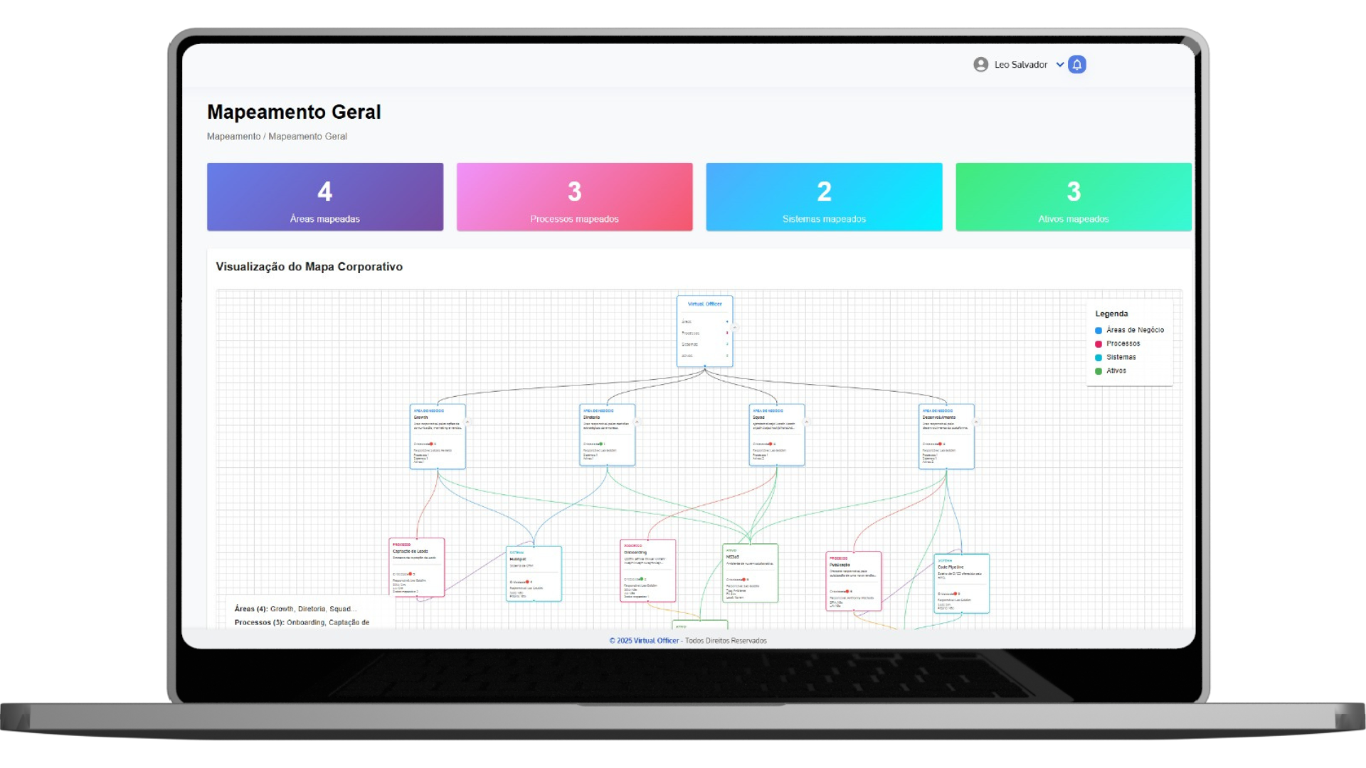 🔹 Business & Data Mapping — visualize e identifique processos, sistemas e ativos críticos.